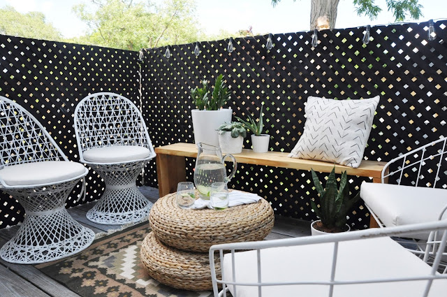 I realize Earth Day happened last week, but today it was 30 degrees outside so I refuse to consider this post late. Our patio-the reason we want to make it a nice space? Sure I love having a well designed space to look at from the kitchen, but it's so much more than that. It's a place for us to enjoy with our girls, and for Connor and me to retreat to after the girls are down for the night. A place for us to sip our wine/moscow mules and just talk about whatever we want without interruption. But it's also a place for us to to entertain. We love hosting out of town guests, and we get a lot of visitors. We love it. We have lived all over the country and made some really wonderful friends along the way- so much so that they are willing to travel to us wherever we live. I don't for one second take this for granted! Because of that, we give a lot of thought to making our home conducive to hosting out of town guests. So along those lines, here is my current inspiration for our balcony. I'm really loving the idea of a privacy screen to make our balcony more cozy.