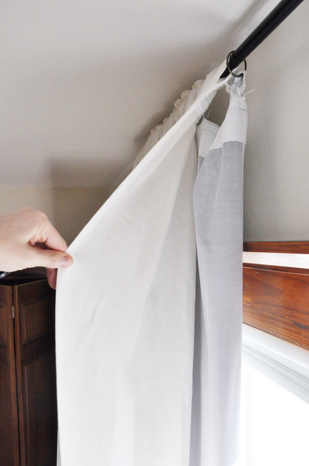 If you look closely you can see one of the many silver hooks we used to pin the liner to the curtains.